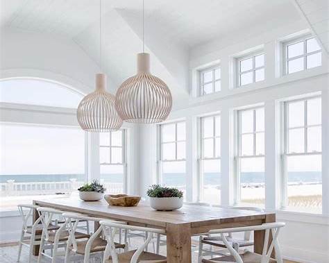 Warm whites, sandy beiges, driftwood tones, and soft taupes are replacing cool grays. These shades make spaces feel light, airy, and naturally coastal without screaming “nautical.”